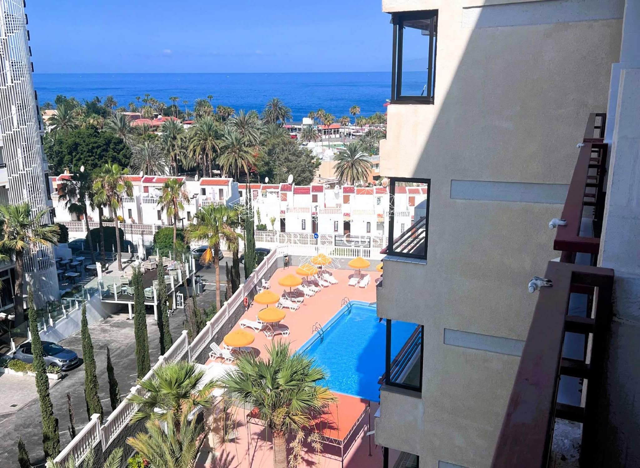 This fifth floor apartment enjoys a pleasant outlook from it's 8m² balcony, down towards the communal pool and laterally, out towards the Atlantic Ocean. Internally, the bathroom has been recently refurbished to include a walk in shower and is now presented in a nice modern style. The rest of this compact apartment would benefit from some modernisation and cosmetic upgrade but for a small investment, it could certainly be an attractive option for those looking for small holiday apartment, located in one of the most sought after parts of Playa de las Americas.