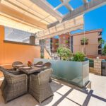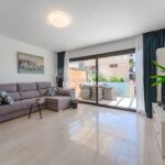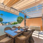This attractive townhouse has been renovated to a very high standard including a new modern kitchen, new bathrooms, floors and much more. Air conditioned, and offered for sale fully furnished, this lovely home is built with a huge living area of 164m² over two levels and consists of an open plan kitchen and lounge, a guest bathroom and one bedroom on the ground floor. On the second level, the master bedroom has fitted wardrobes and features a sunny balcony enjoying wonderful sea views plus the second en-suite bedroom. In additional to all of this there is a private garage with direct access to the house.