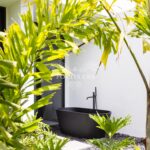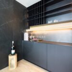 This contemporary property is offered for sale inclusive of the high quality furnishings, and enjoys an open plan living concept distributed over three floors boasting comfort and an incredible sense of peace and tranquillity. Upon entering on the ground floor you are greeted with a large, bright entrance hall incorporating a lift and feature staircase leading to all levels. This level is dedicated to the sleeping area, here you will find three spacious bedrooms, each with fitted wardrobes, garden access and en suite bathrooms, two of which boast an external bath tub surrounded by greenery.
